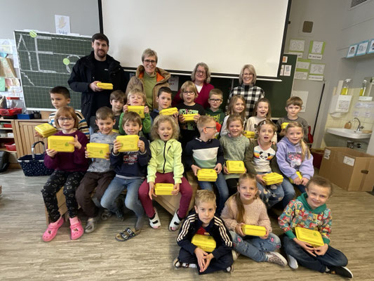 Ein besonderes Erlebnis erwartete die Schülerinnen und Schüler der ersten Klasse, als Vertreterin der Ökomodellregion Steinwald, Eva Gibhardt, gemeinsam mit Bürgermeisterin Marion Höcht die Kinder mit einer liebevoll gepackten Brotzeitdose voller regionaler Bio-Produkte überraschte.